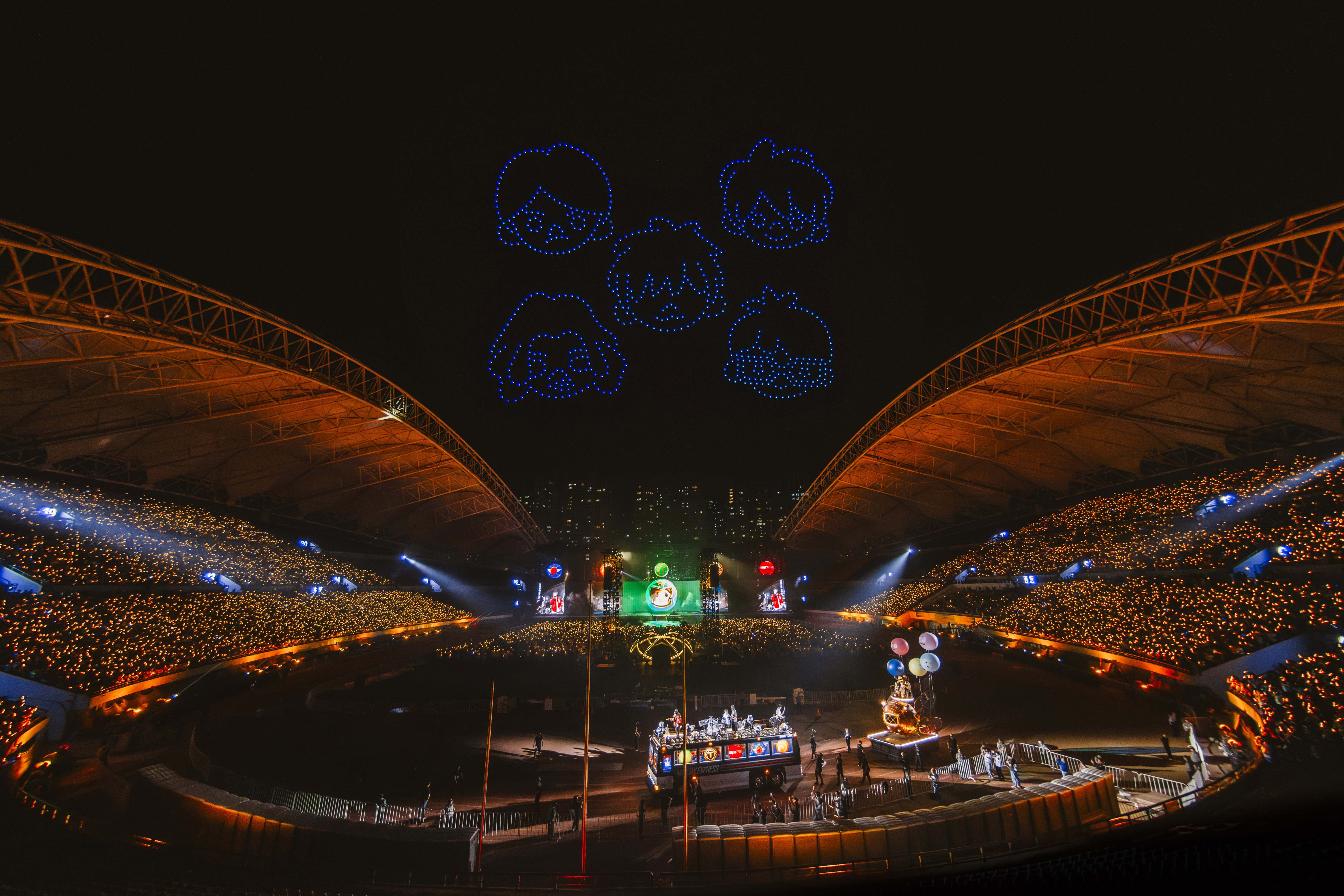 想要一整夜MAYDAYLAND的狂歡,就給你整座體育場的繽紛裝扮!五月天為你包下座體育場,滿滿的五月天元素和五月天公仔一起在體育場前迎接你的到來!五月天《回到那一天》25周年巡回演唱會13、14、15日一連三天和9萬名歌迷哈爾濱國際會展體育中心體育場狂歡,一走進場館就有無限驚喜,體育場的五月天裝飾,點歌的有求必應(yīng),演唱會上環(huán)場巴士巡航狂歡,還出動1500臺無人機在星空中隨著歌曲變換出20種圖案,總計超過30分鐘的無人機震撼場面,最后安可獻上草莓月亮刷屏全網(wǎng),在哈爾濱涼爽的六月天,再次譜寫絕美的“五月之戀”。