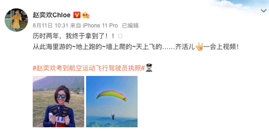 趙奕歡考取航空運(yùn)動(dòng)執(zhí)照,輕極限運(yùn)動(dòng)成Z世代新風(fēng)潮!