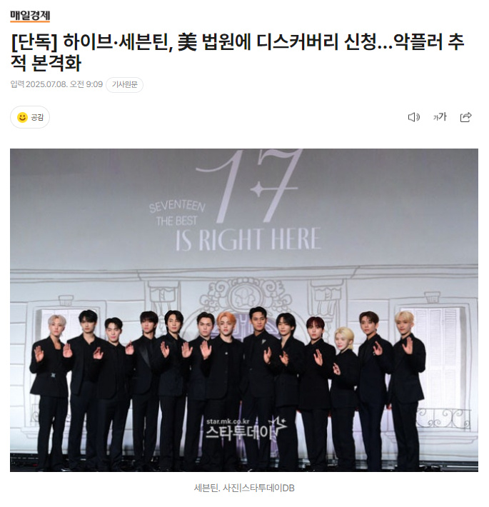 HYBE·SEVENTEEN向美國(guó)法院遞交證據(jù)申請(qǐng) 正式開(kāi)始追蹤惡評(píng)者